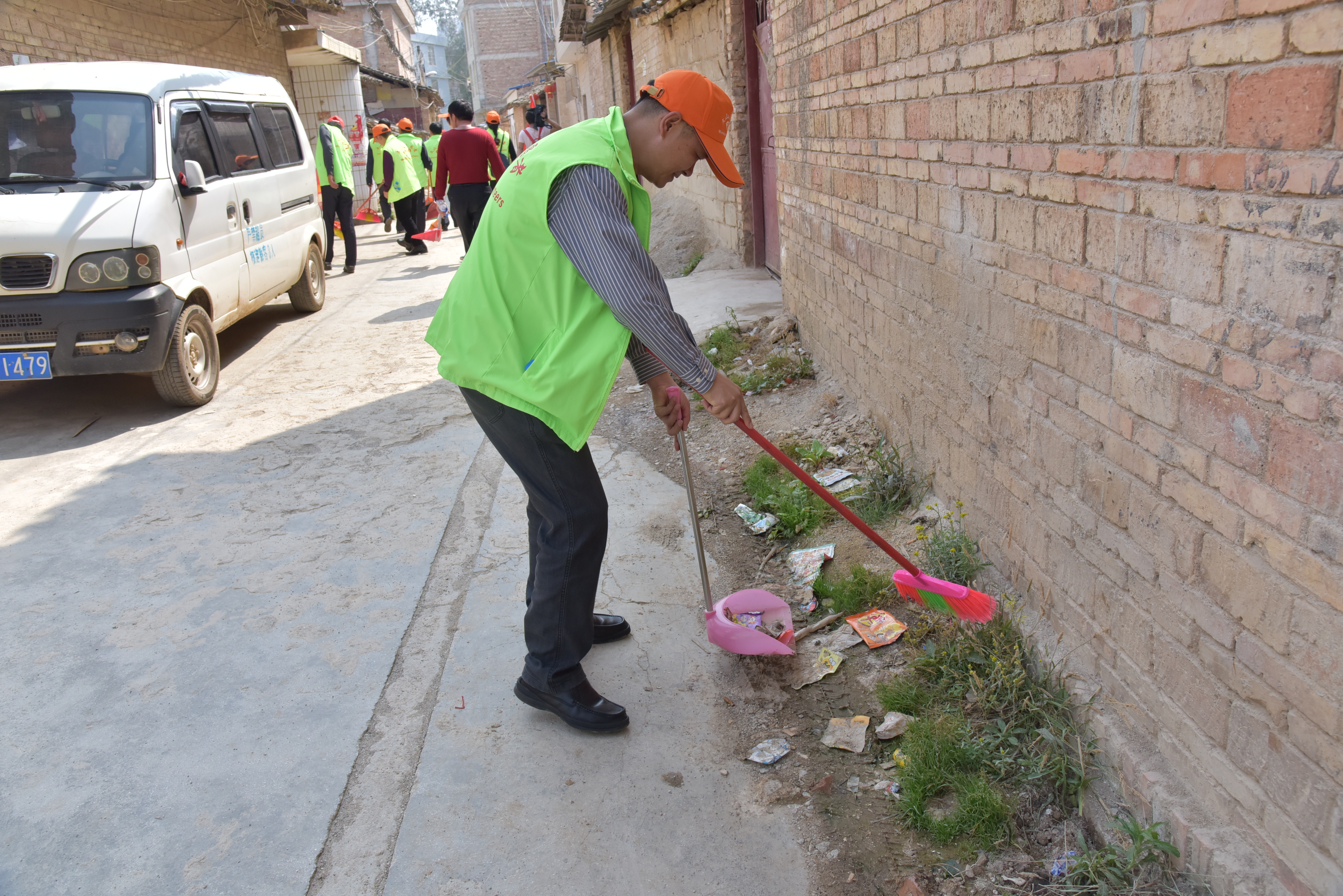志愿者带着扫把、撮箕和火钳等工具来到攀枝花社区,沿着村内道路开始卫生大清扫。他们有的挥动着扫把认真清扫路面,有的拿着夹子清理沿路的卫生死角……大家齐心协力,不怕脏、不怕累,为村民营造了一个干净、整洁的良好环境。