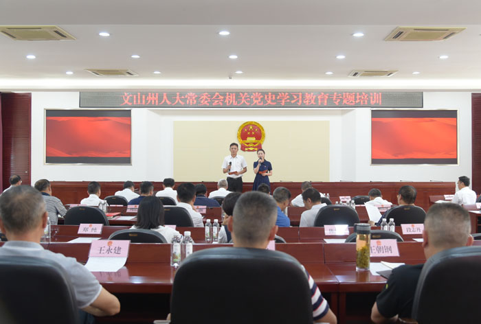 6月4日,文山州人大常委会机关以“党史故事我来讲  百年党史一起学”为主题的2021年第二期道德讲堂开讲。干部职工通过聆听那些为国家计、为民族谋、为人民战的革命先烈的故事,学习党史,感悟思想伟力,体验穿越历史的红色力量。