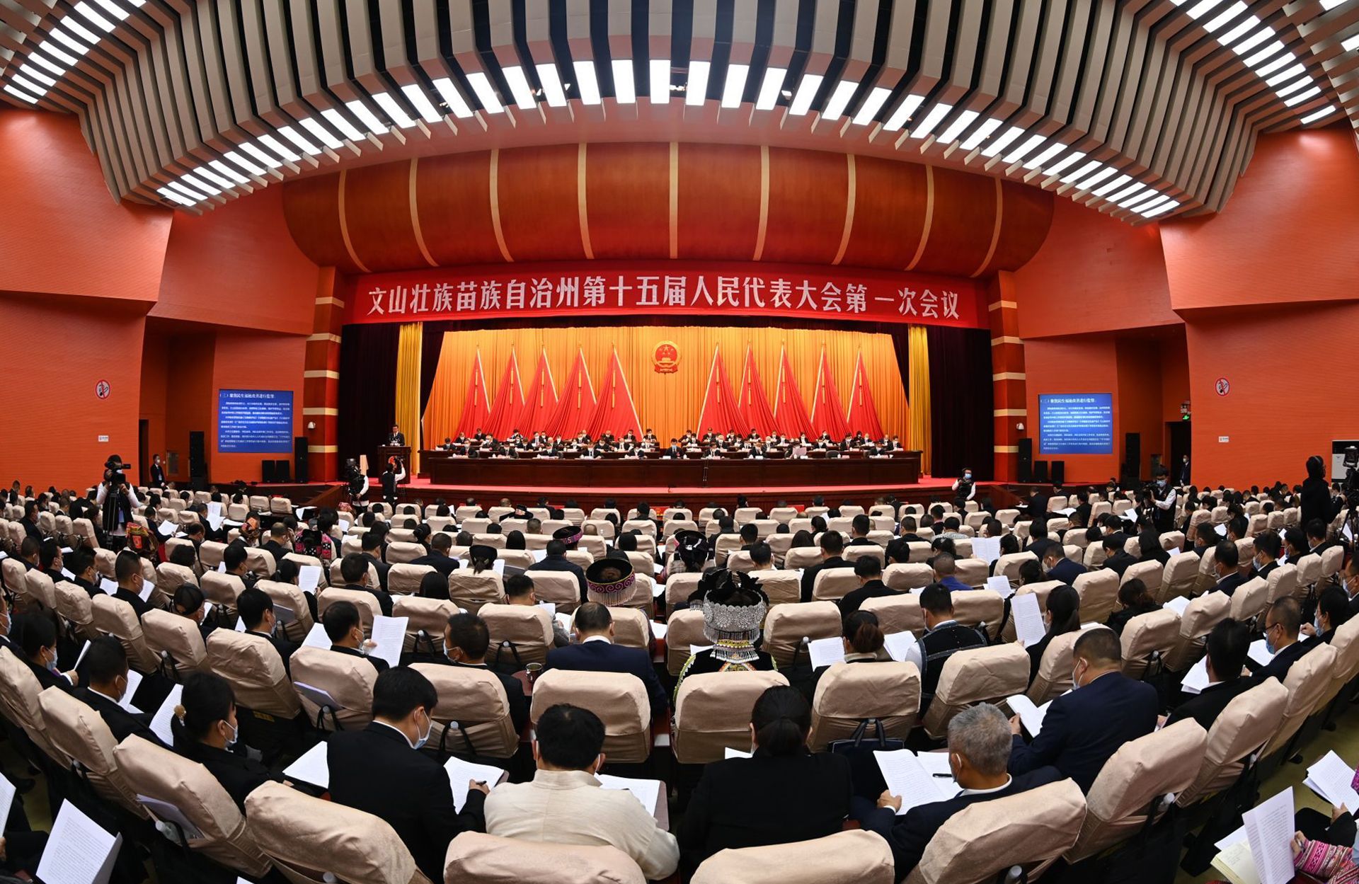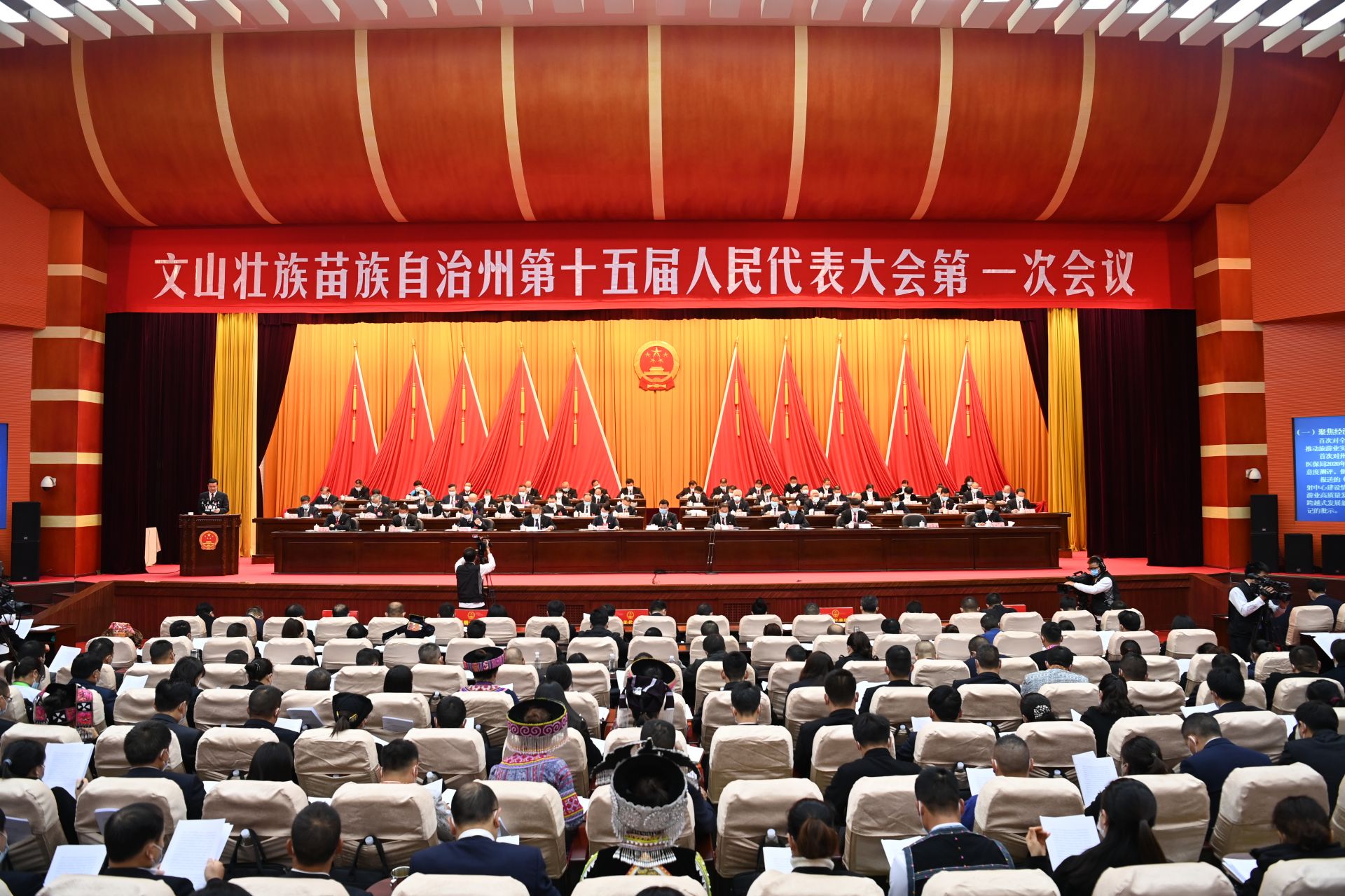 2月12日上午,文山壮族苗族自治州第十五届人民代表大会第一次会议在文山市会务中心报告大厅举行第二次全体会议。