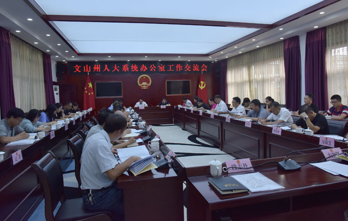 本站讯 8月23日,文山州人大系统办公室交流会在州人大常委会机关召开。会议的主要目的是深入学习贯彻落实习近平总书记重要指示精神,贯彻落实全国人大常委会和省人大常委会的要求,促进全州各级人大常委会机关的工作交流和联系,共同提高服务保障人大及其常委会依法履职的能力和水平,进一步做好新时代地方人大工作。